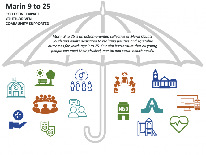 The goal of Marin 9 to 25 is to create a gathering space for all stakeholders to develop a shared vision of positive outcomes for youth that lives at a community level and not within the silo of one agency. The team’s focus is to create increased transparency, sharing and communication amongst providers while engaging youths from ages 9 to 25 to drive the vision of how we ensure positive and equitable outcomes for youth.